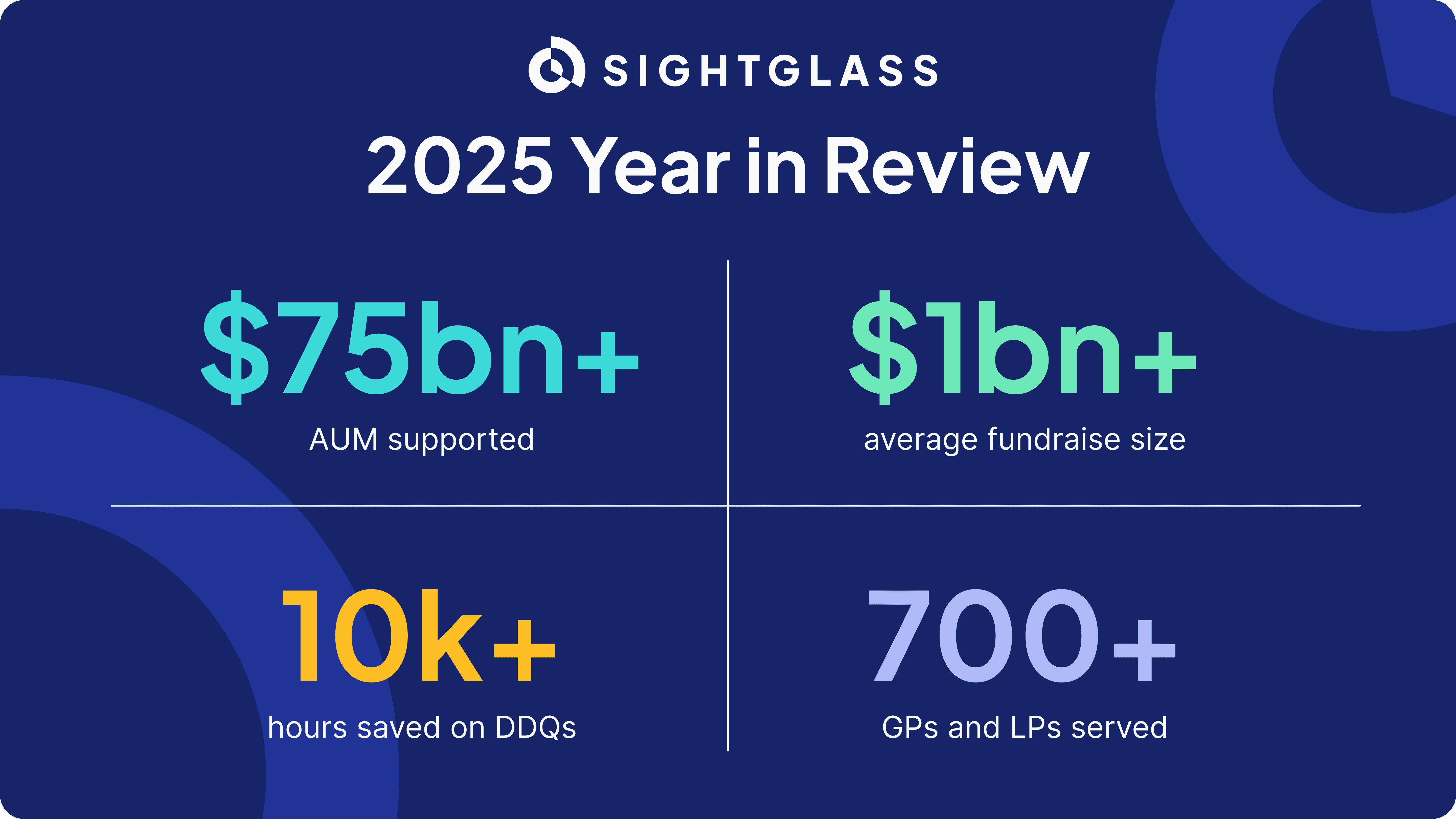 In 2025, we were proud to support IR teams at firms ranging from emerging venture managers to decades-old private equity firms with $10bn+ in AUM. We greatly appreciate and value the trust our customers and their LPs have placed in Sightglass, knowing Investor Relations teams handle the most sensitive information and relationships at an investment firm. Our customers raised billions of dollars last year and saved 10,000+ working hours, leveraging our smart data rooms and AI-powered DDQ responses. And more than 700 LPs leveraged Sightglass as part of their diligence process.